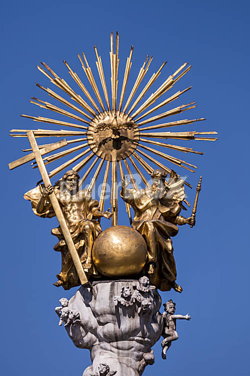 Beschreibung Österreich, Linz, Hauptplatz, Dreifaltigkeitssäule. Heilige Dreiofaltigkeit der katholischen Kirche