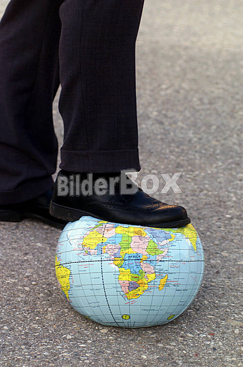 Beschreibung Erdkugel wird mit Fuessen getreten Copyright (2002) by BilderBox.com, Erwin Wodicka, A-4062 Thening. Verwendung nur nach unseren AGB: www.bilderbox.com/agb.html ( in an einer einem auf als + und...