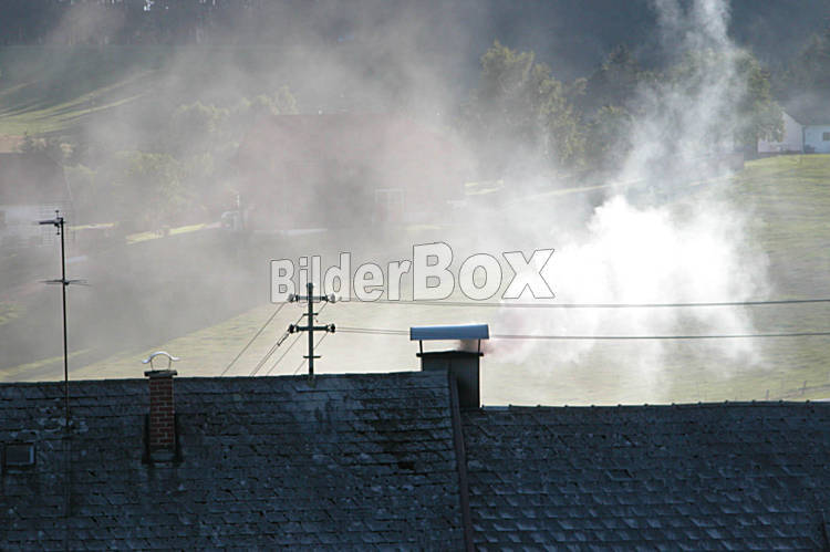 Beschreibung Rauchender Schornstein eines Hauses [ (c) www.BilderBox.com, Erwin Wodicka, A-4063 Breitbrunn, Tel. +43 676 5103 678. Verwendung nur gegen HONORAR, BELEG, URHEBERVERMERK und den AGBŽs auf...