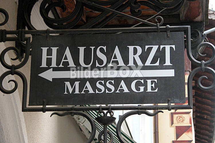 Beschreibung Schild - Hausarzt / Massage (c) www.BilderBox.com, Erwin Wodicka, A-4063 Breitbrunn, Tel. +43 676 5103 678. Verwendung nur gegen HONORAR, BELEG, URHEBERVERMERK und den AGBŽs auf www.bilderbox.com...