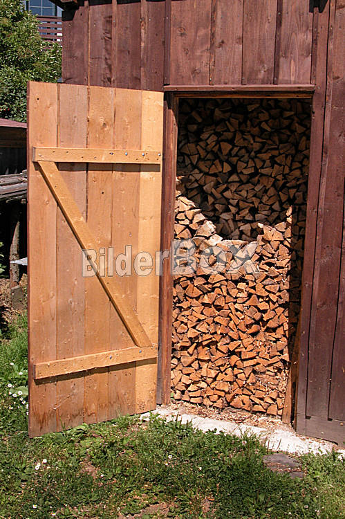 Beschreibung Schuppen mit Brennholz [ (c) www.BilderBox.com, Erwin Wodicka, A-4063 Breitbrunn, Tel. +43 676 5103 678. Verwendung nur gegen HONORAR, BELEG, URHEBERVERMERK und den AGBŽs auf www.bilderbox.com ]...