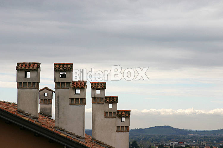 Beschreibung Schlote eines Wohnhauses [ (c) www.BilderBox.com, Erwin Wodicka, A-4063 Breitbrunn, Tel. +43 676 5103 678. Verwendung nur gegen HONORAR, BELEG, URHEBERVERMERK und den AGBs auf www.bilderbox.com ]...