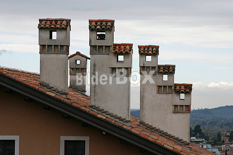Beschreibung Schlote eines Wohnhauses [ (c) www.BilderBox.com, Erwin Wodicka, A-4063 Breitbrunn, Tel. +43 676 5103 678. Verwendung nur gegen HONORAR, BELEG, URHEBERVERMERK und den AGBs auf www.bilderbox.com ]...