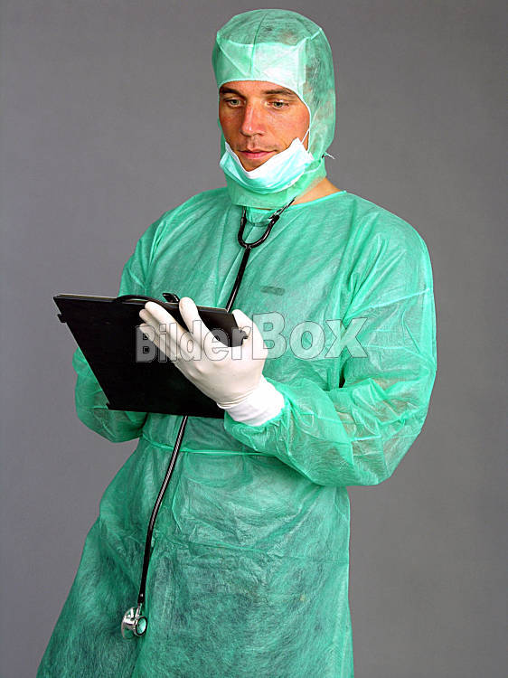 Beschreibung Chirurg mit Krankenakte [ (c) www.BilderBox.com, Erwin Wodicka, A-4063 Breitbrunn, Tel. +43 676 5103 678. Verwendung nur gegen HONORAR, BELEG, URHEBERVERMERK und den AGBs auf www.bilderbox.com ] in...
