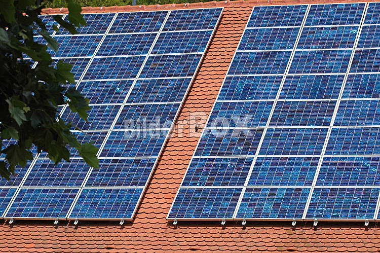 Beschreibung Sonnenkollektoren auf einem Hausdach [ (c) www.BilderBox.com,Erwin Wodicka,Siedlerzeile 3,A4062 Thening,Tel.+43 676 5103 678. Verwendung nur gegen HONORAR, BELEG, URHEBERVERMERK und den AGBs auf...
