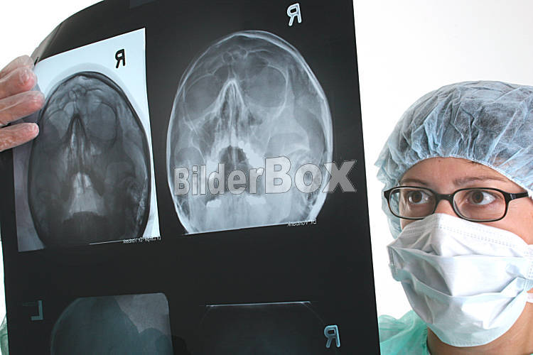 Beschreibung Chirurgin mit Roentgenbild [ (c) www.BilderBox.com, Erwin Wodicka, Siedlerzeile 3, A-4062 Thening, Tel. + 43 676 5103678.Verwendung nur gegen HONORAR, BELEG,URHEBERVERMERK und den AGBs auf...
