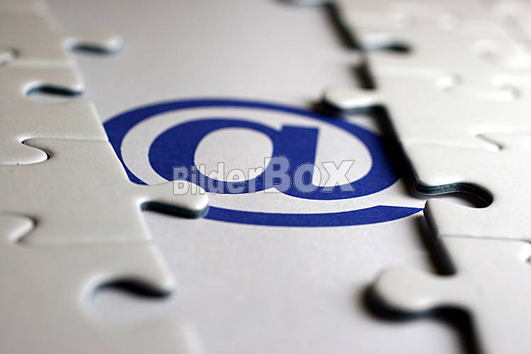 Beschreibung Puzzleteile und @-Zeichen [ (c) www.BilderBox.com, Erwin Wodicka, Siedlerzeile 3, A-4062 Thening, Tel. + 43 676 5103678.Verwendung nur gegen HONORAR, BELEG,URHEBERVERMERK und den AGBs auf...