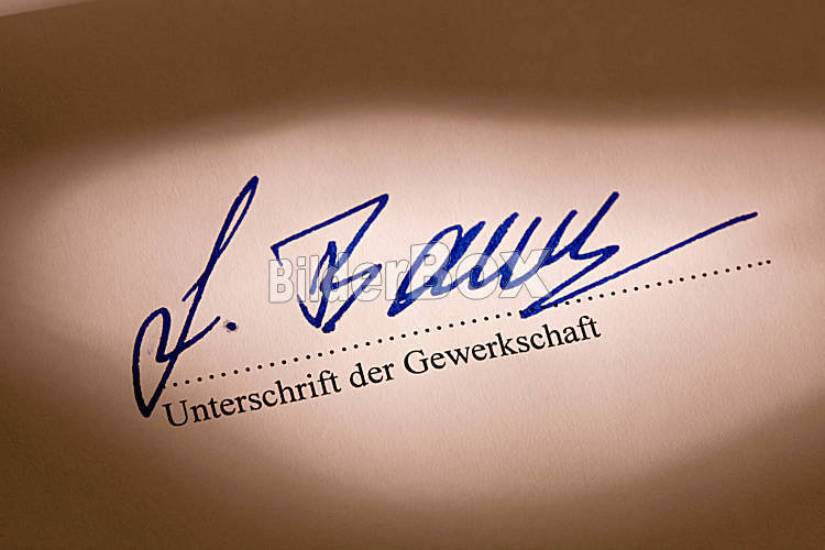 Beschreibung Unterschrift unter einen Tarifvertrag eines Gewerkschaft Vertreters
