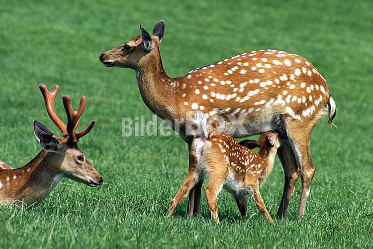 Beschreibung Hirschefamilie auf einer Wiese...