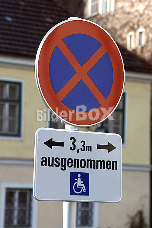 Beschreibung Behindertenparkplatz Parken,Parkplatz,Behindertenparkplatz,Parkverbot,Halteverbot,Halten verboten,Parken verboten Copyright by BilderBox; Erwin Wodicka; A- 4062 Thening; Jänner 2000