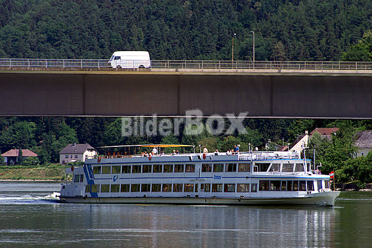 Beschreibung Schifffahrt auf der Donau in Oesterreich Fluß, Fluss, Brücke, Bruecke, Ausflugsfahrt, Schifffahrt, Personenschifffahrt Copyright (2000) by BilderBox; Erwin Wodicka; A- 4062 Thening,...