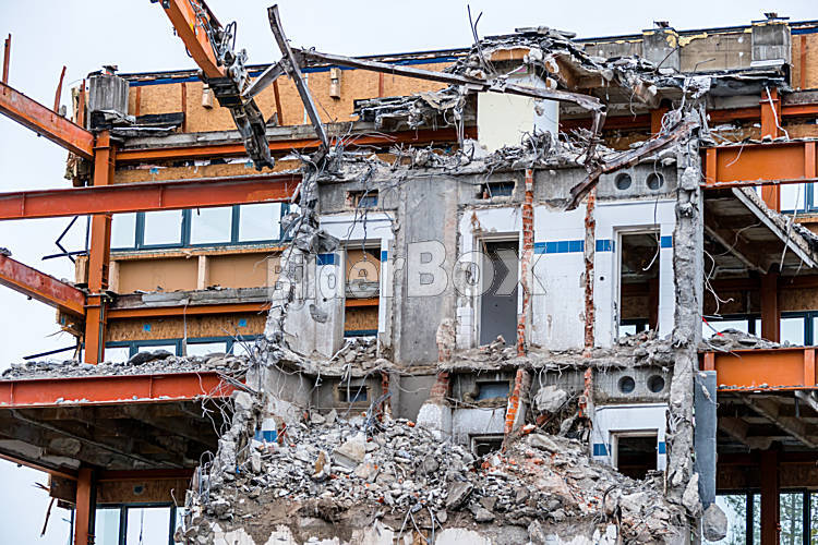 Beschreibung Ein älteres Bürogebäude wird abgerissen. Abbruch statt Renovierung