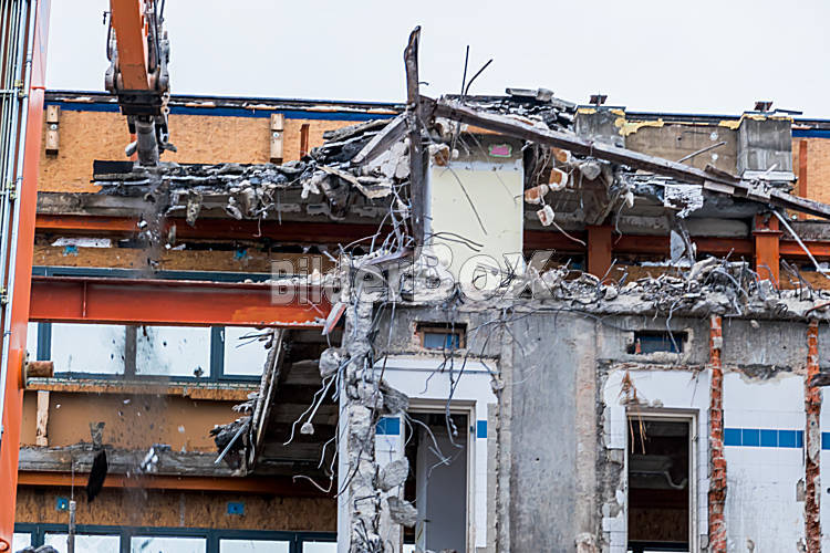 Beschreibung Ein älteres Bürogebäude wird abgerissen. Abbruch statt Renovierung