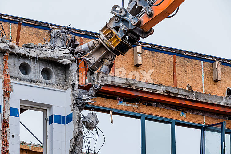 Beschreibung Ein älteres Bürohaus wird abgerissen um für einen Neubau Platz zu machen