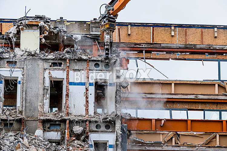 Beschreibung Ein älteres Bürohaus wird abgerissen um für einen Neubau Platz zu machen