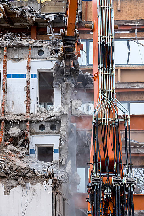 Beschreibung Ein älteres Bürohaus wird abgerissen um für einen Neubau Platz zu machen