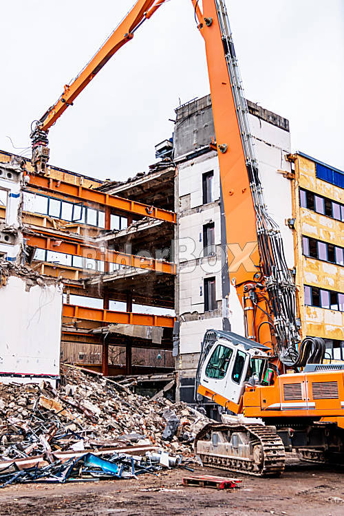 Beschreibung Ein älteres Bürohaus wird abgerissen um für einen Neubau Platz zu machen