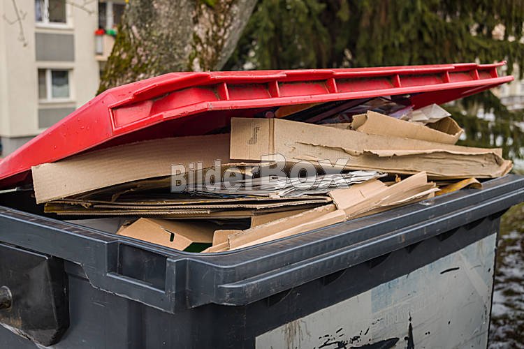Beschreibung Ein Sammelbehälter für Altpapier und Karton zur Mülltrennung.
