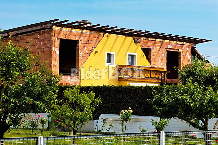 Beschreibung Ein altes Haus wird durch einen Zubau modernisiert und saniert.