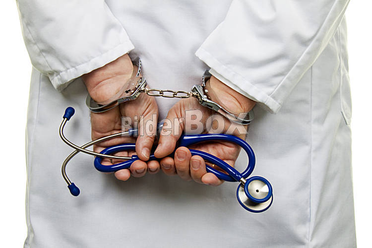 Beschreibung Arzt mit Stethoskop und Handschellen