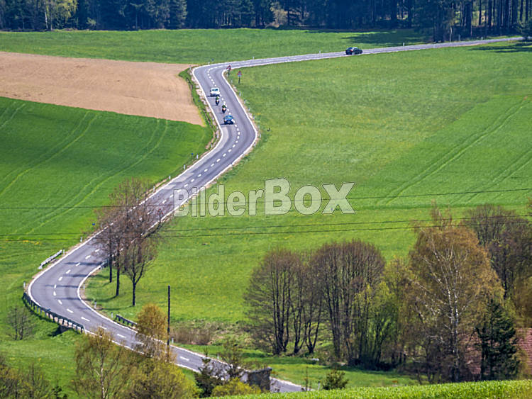 Beschreibung Das Band einer Bundesstrasse zieht sich durch die Landschaft