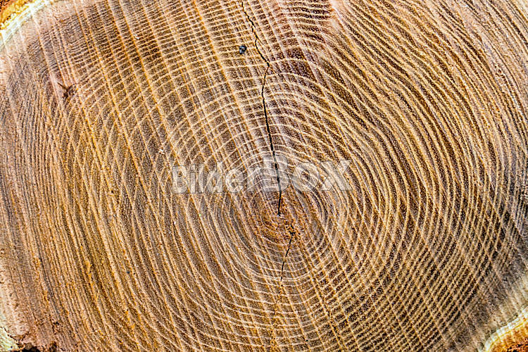 Beschreibung Eie Schnittfläche eines Baumstammes, Symbolbild für Alter und Zeit