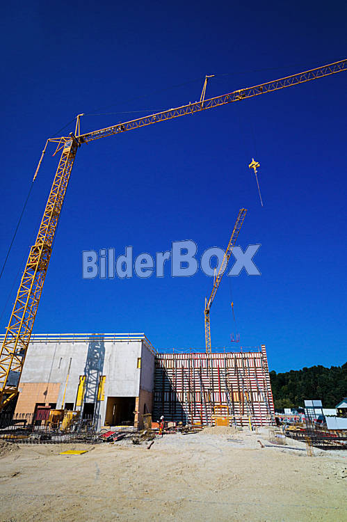 Beschreibung Die Baustelle eines neuen Firmengebäudes für Produktion und Verwaltung