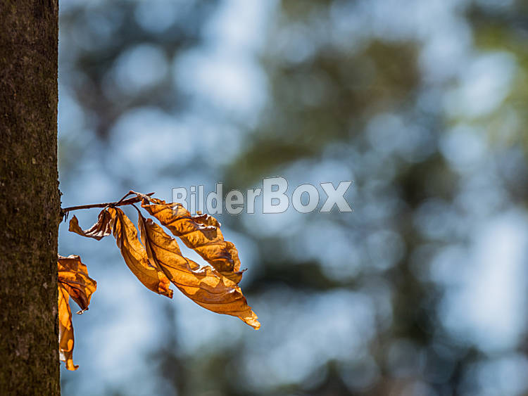Beschreibung Braune Blätter im Herbst auf einem Baum