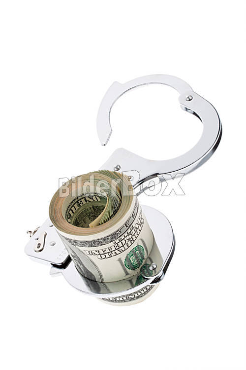 Beschreibung Viele Dollar Geldscheine mit Handschellen