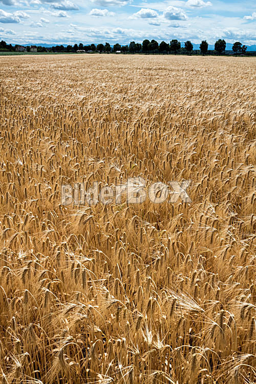 Beschreibung Eine Getreide Ähre auf einem Getreidefeld. Gerste in der Landwirtschaft vor der Ernte.