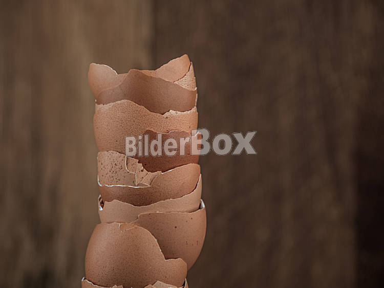 Beschreibung Leere Schalen von Eiern aufgestapelt.