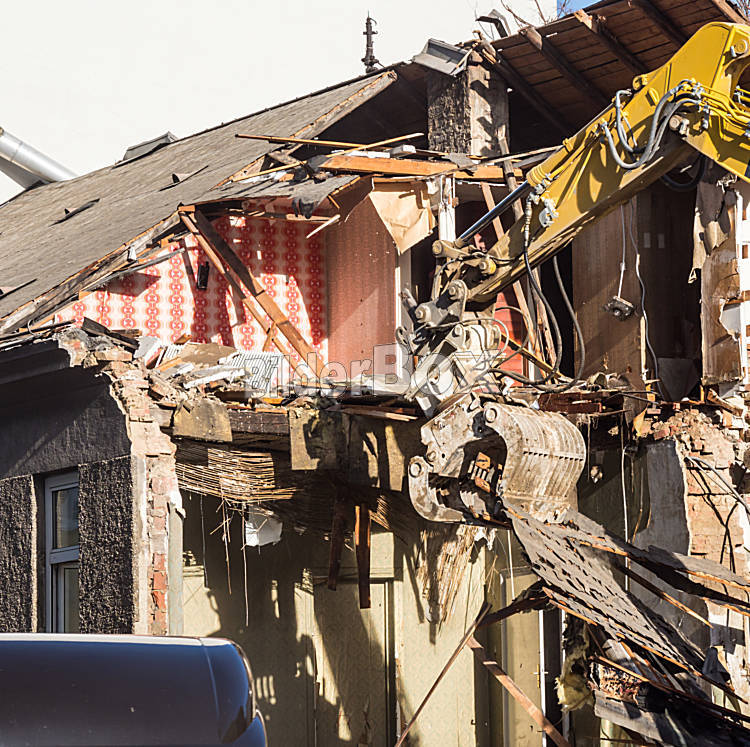 Beschreibung Ein altes Haus wird abgerissen um Platz für einen Neubau zu schaffen.