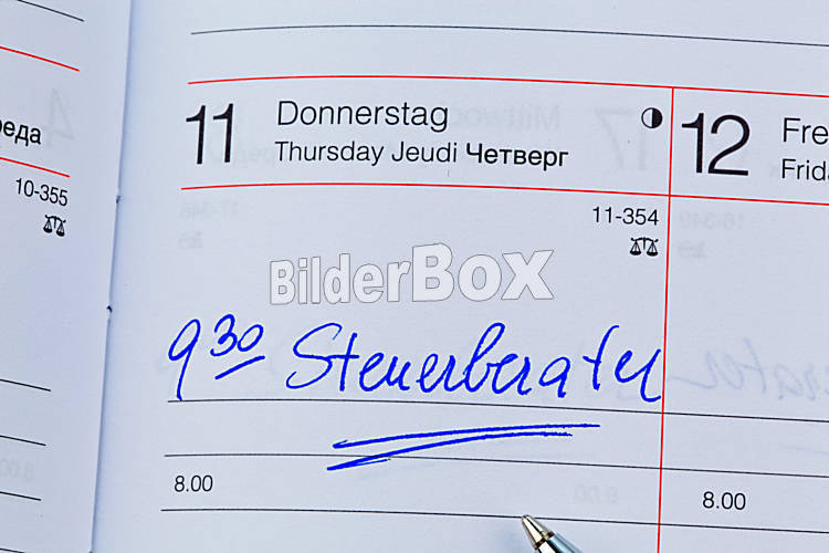 Beschreibung Ein Termin ist in einem Kalender eingetragen: Steuerberater