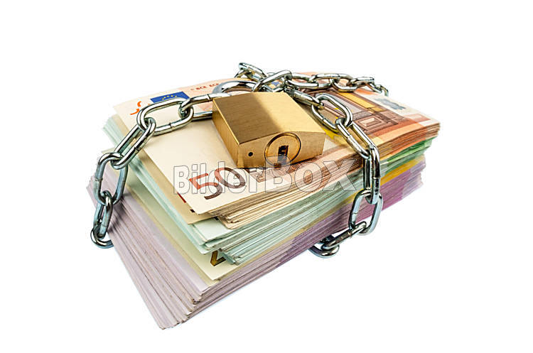 Euro-Geldscheine mit Kette und Vorhängeschloss