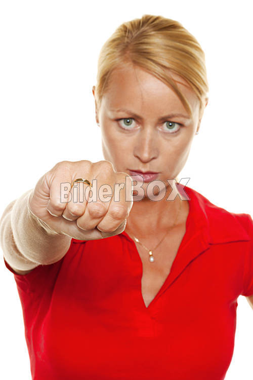 Beschreibung Eine junge Frau hält Hände vor ihr Gesicht.