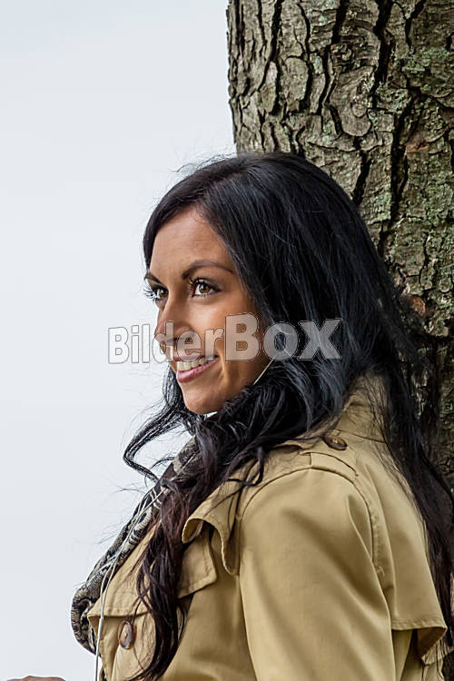 Beschreibung Eine junge Frau hört Musik mit Ihrem Handy. Unterhaltung am Mobiltelefon.
