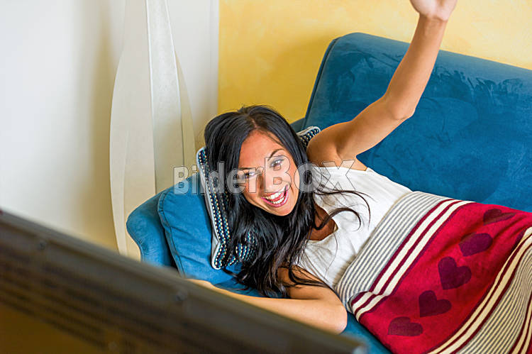 Beschreibung Eine junge Frau sieht einen traurigen Film im TV