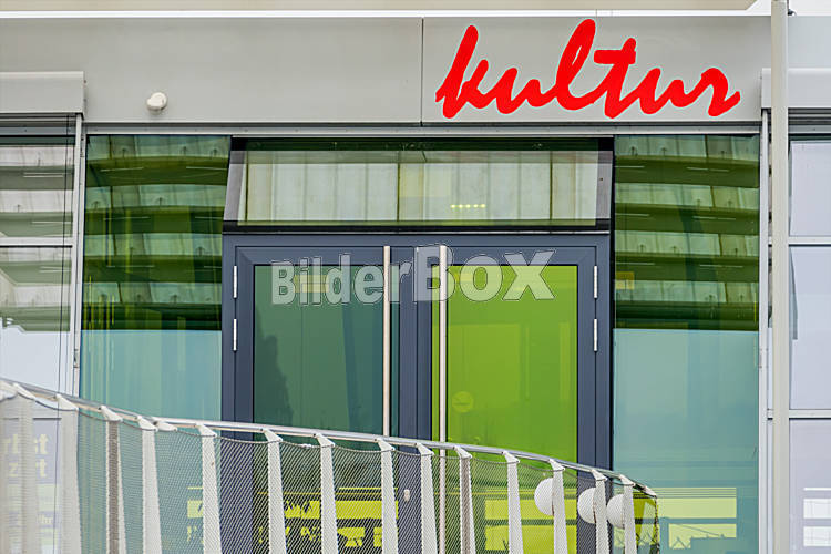 Beschreibung Gebäude Schild Kultur, Symbol für Kulturpolitik und Kulturförderung