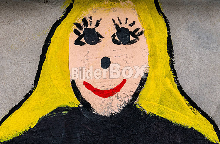 Beschreibung Gemälde auf der Mauer einer Schule. Portrait eines Kindes.