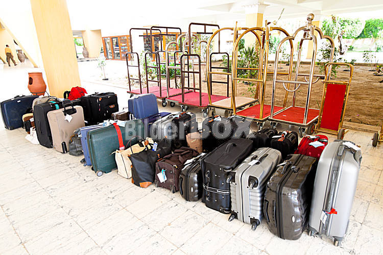 Beschreibung Gepäck und Koffer von Touristen einer Reisegruppe