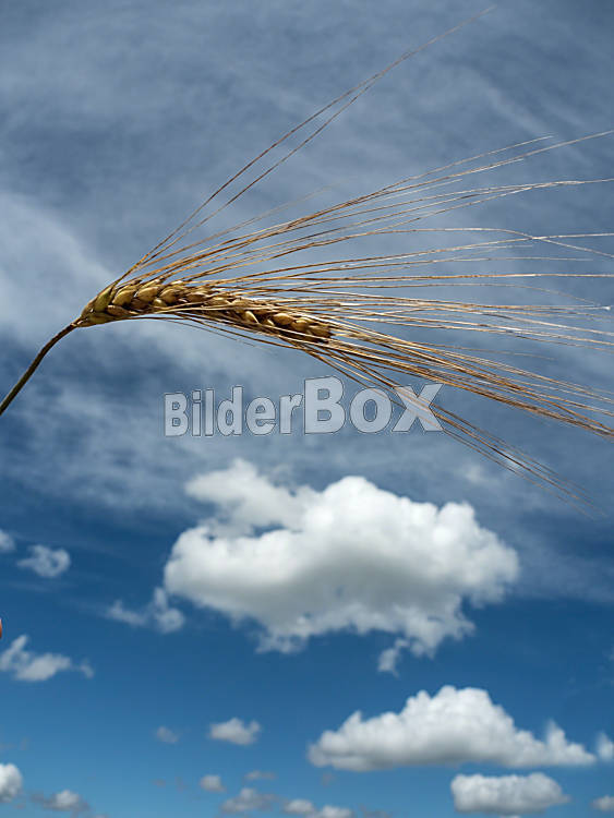 Beschreibung Getreideähre von Gerste auf einem Getreidefeld vor der Ernte