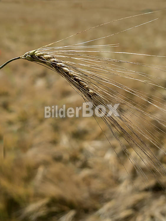 Beschreibung Getreideähre von Gerste auf einem Getreidefeld vor der Ernte