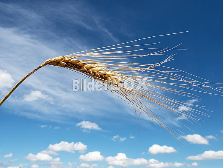 Beschreibung Getreideähre von Gerste auf einem Getreidefeld vor der Ernte