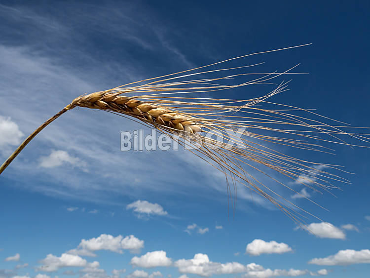 Beschreibung Getreideähre von Gerste auf einem Getreidefeld vor der Ernte