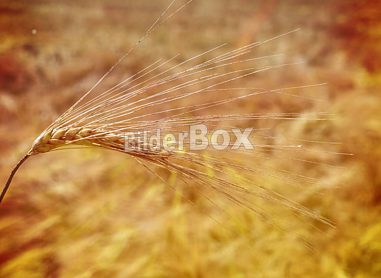 Beschreibung Getreideähre von Gerste auf einem Getreidefeld vor der Ernte