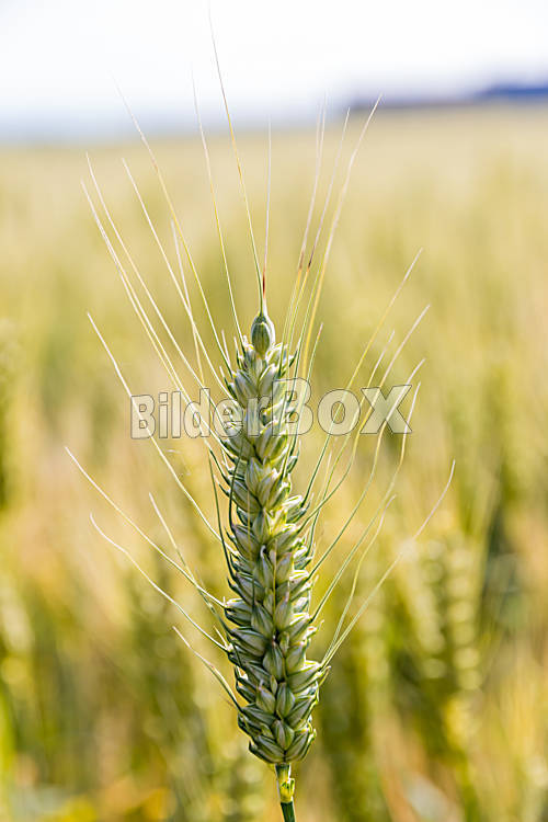 Beschreibung Ein Getreidefeld mit Gerste wartet auf die Ernte. Symbolfoto für Landwirtschaft und gesunde Ernährung.