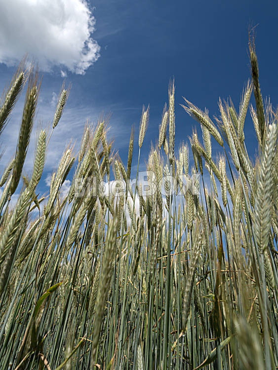 Beschreibung Ein Getreiudefeld Roggen auf einem Feld vor der Ernte im Sommer