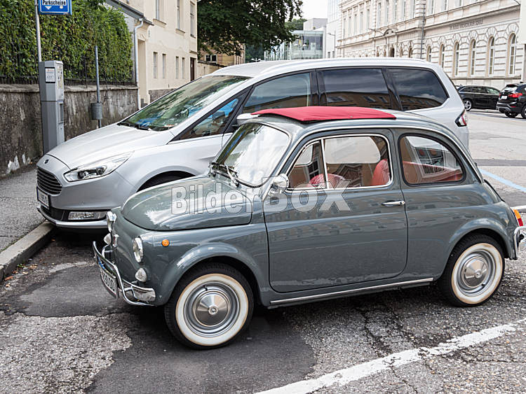 Beschreibung Großes und kleines Auto nebeneinander auf einem Parkplatz. Größenunterschied