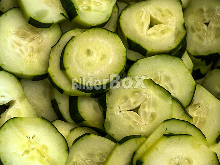 Beschreibung Mehrere Gurkenscheiebn liegen nebeneinander