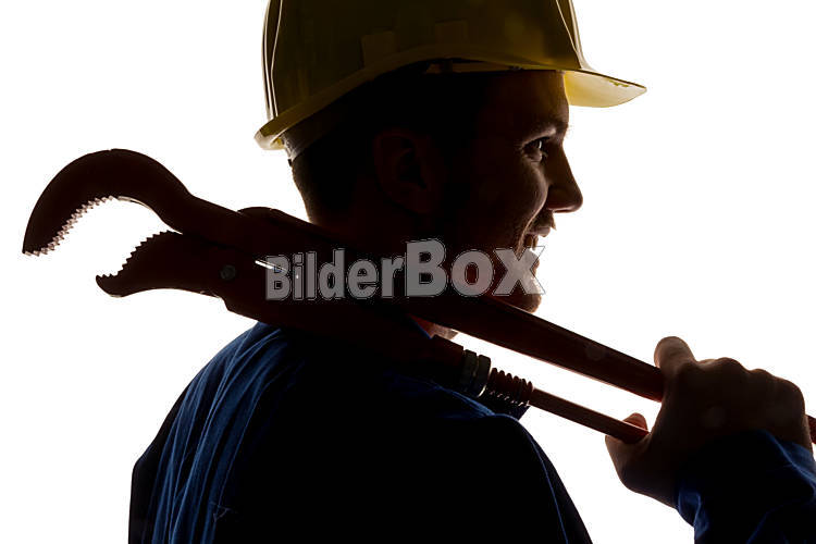 Beschreibung Ein Arbeiter in einem Gewerbebetrieb ( Handwerker ) mit Werkzeug in der Hand